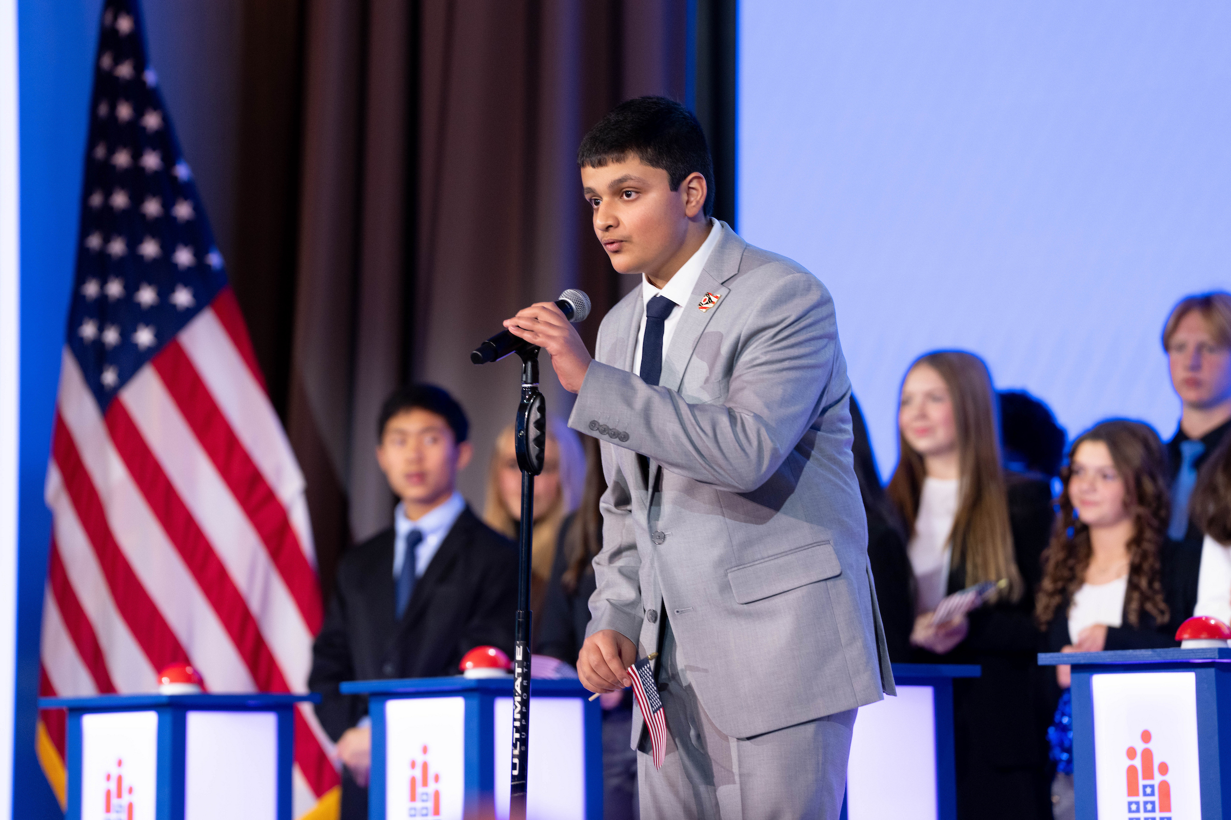 The National Civics Bee is an annual competition that inspires young Americans to engage in civics and contribute to their communities. As they compete for a spot in the National Championship, sixth, seventh, and eighth graders from across the country showcase their civics knowledge and skills, winning prizes and recognition along the way.